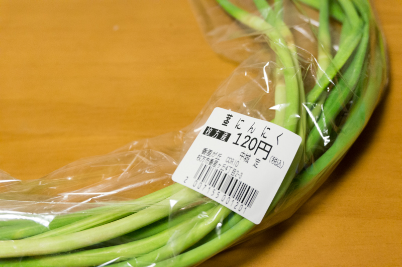 産直センターで買った、この枚方産茎にんにくを晩御飯の一品に。