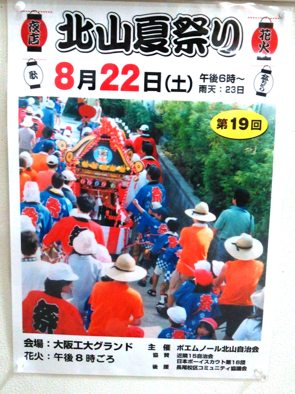 北山夏祭り盆踊り大会 大阪工大グラウンド →地図 →張り紙 1 / 2