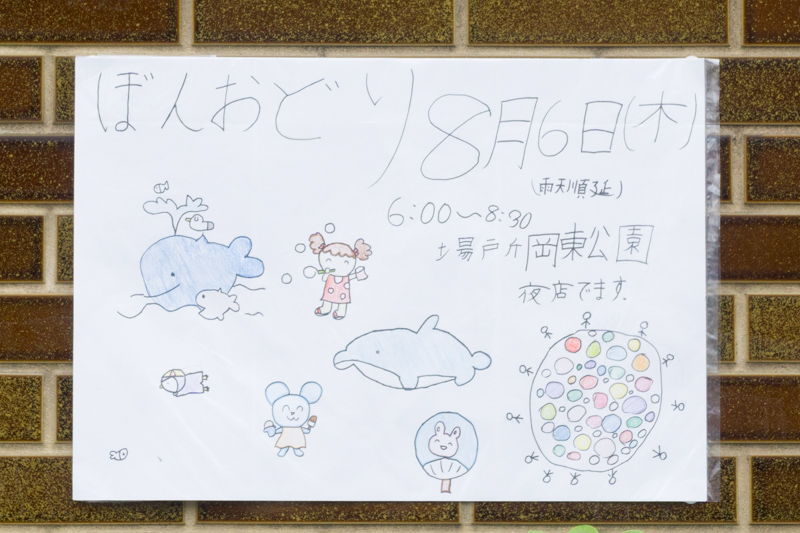 めいりん夏まつり ふれあい広場 夜店&盆踊り大会  明倫小学校 →地図張り紙