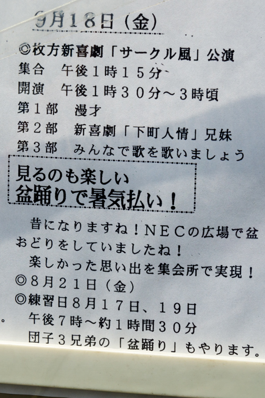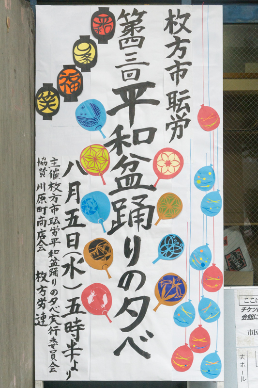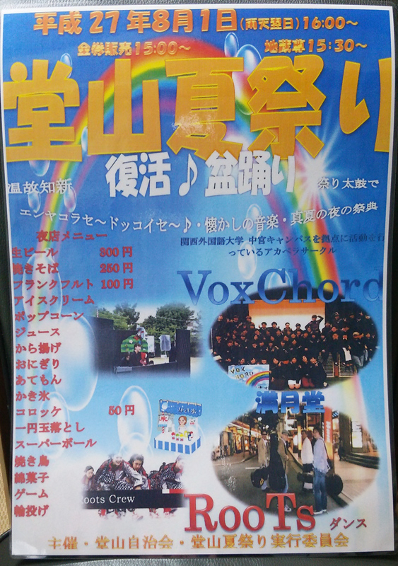 第30回記念香里園協和会 納涼盆踊り大会 枚方第二中学校 →地図 →盆踊りの方のHP →張り紙