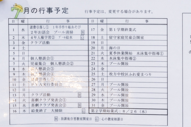 第9回 ひらの校区夏まつり 平野小学校 →地図 →張り紙