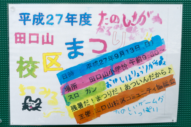 第5回 田口山校区祭り 残暑だ!祭りだ!あついんだから♪ 田口山小学校 →地図 →張り紙 1 / 2