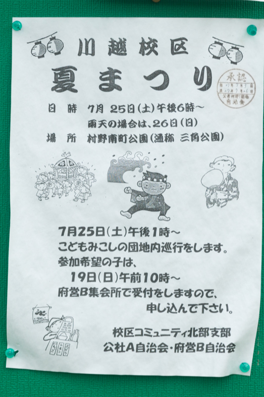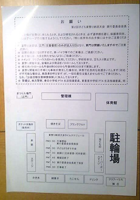 中宮団地 連合夏まつり(団地夏祭り) 第三グランド及び幼児プール周辺 →地図(中宮第三団地のどこか) →張り紙