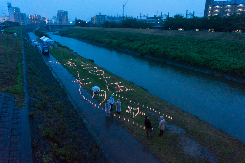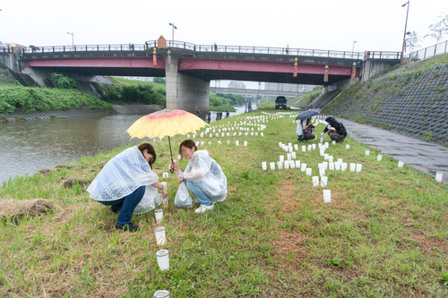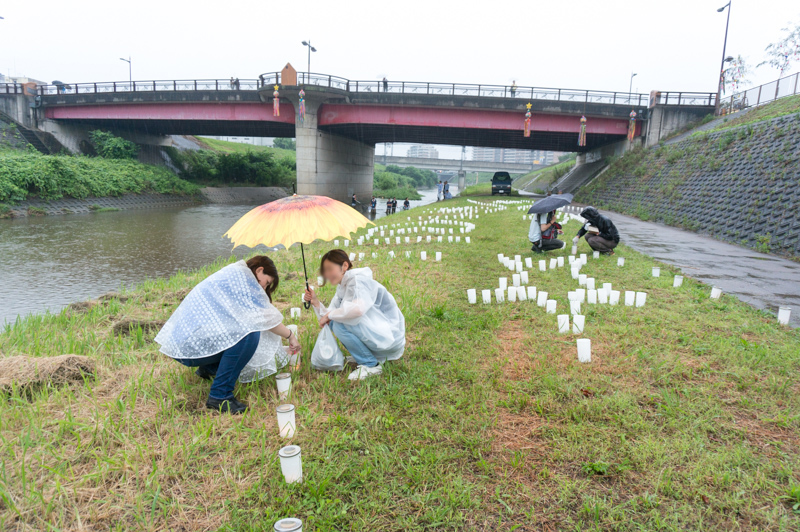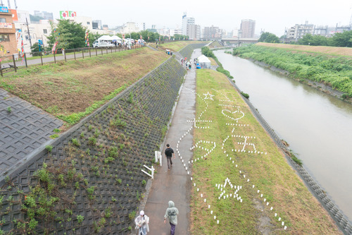 1,200個のカップを流す予定だった「灯篭流し」は雨のため残念ながら、中止となってしまいました。