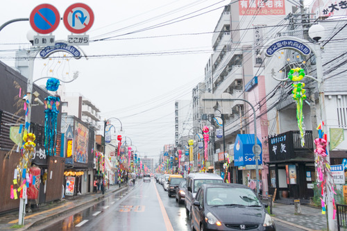 毎年広くて長い商店街の端から端まで豪華な七夕飾りで装飾されます。