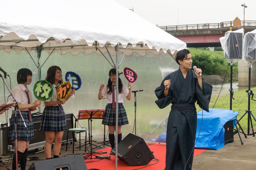 バックで応援してくれたのは、枚方・交野を応援するご当地アイドルグループスマイルジェネレーションのみなさん。