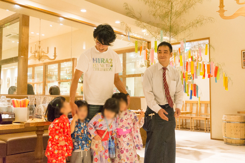 お母さん達が料理に並んでいる間、外では小沼店長が・・・