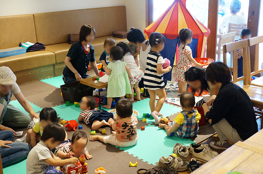 靴を脱いでおもちゃで思いっきり遊べるスペース。いつも大人気!