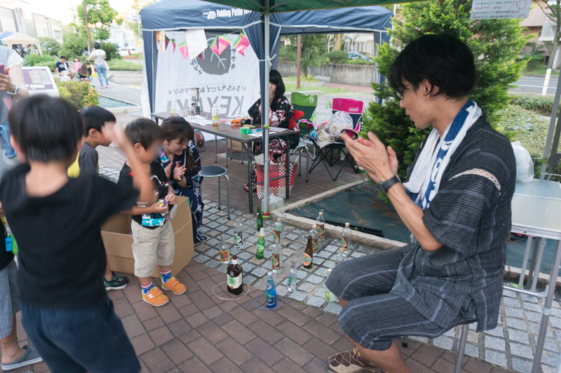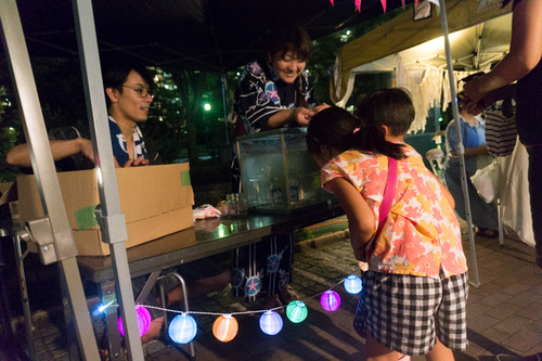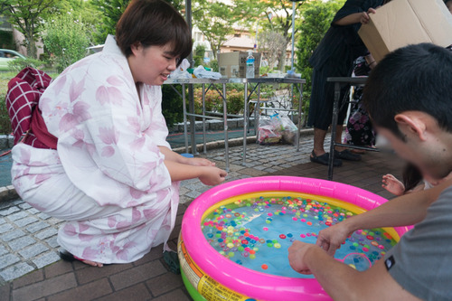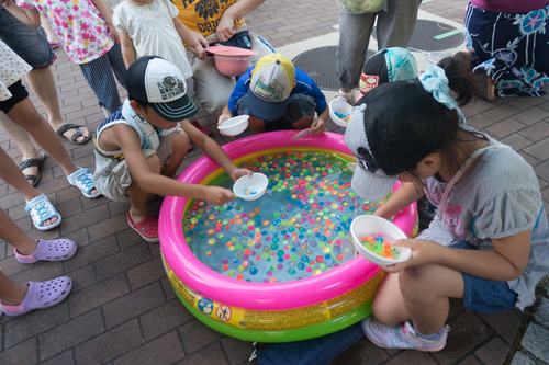 通常(日中開催)のけやきマルシェのクラフトやフードの出店ブースに加えて、夏祭りにはかかせない子どもに大人気の「縁日ブース」も開設されています![]()