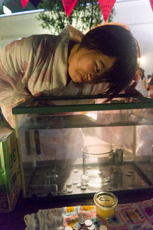 ブースの裏では、昼間は子どもたちが賑やかに遊んでいた水路。