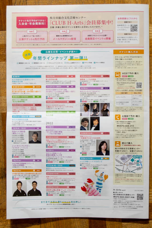 また「CLUB H-Arts」というチケットの先行予約ができる会員を募集しているとのことでした。