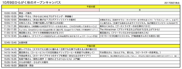 ・9/21 当日の時間割を追加しました!