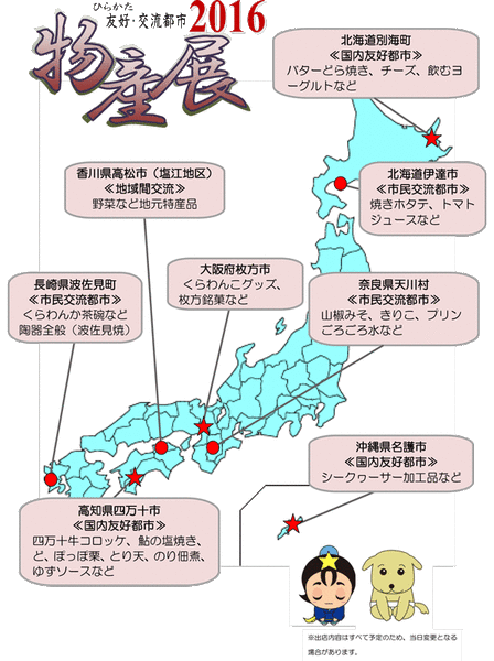 「友好・交流都市物産展」は枚方市主催で毎年開催されている、枚方市の友好都市と地域間交流都市の名産品が集まるイベント。日本各地の美味しいものがたくさん並びます!!