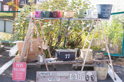 大きめの什器から小物までいろんなお庭の雑貨たちが並ぶやこちらのお店は、Garden-Design COCOROさん。