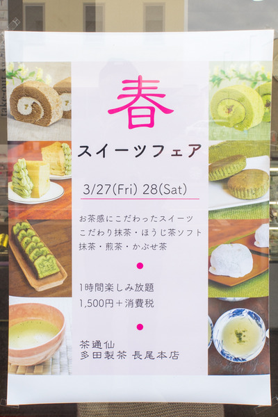今回は長尾にある茶通仙 多田製茶で今日3月27日と明日28日に行われるスイーツ食べ放題イベント「スイーツフェア」に僕すどんとお古の方でいってきましたので、その様子をお届けします!