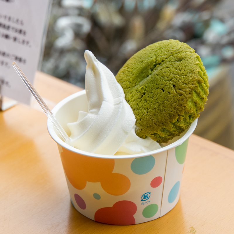 お古の方はほうじ茶ソフトクリームを注文しましたが、美味しそうでした(雑)。