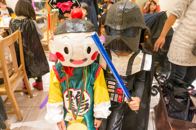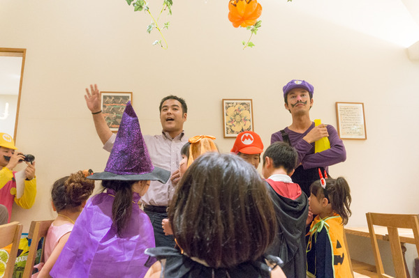 子ども達「なにそれ〜?へんなの!」と存在感のある仮装にみんな興味津々でした。笑