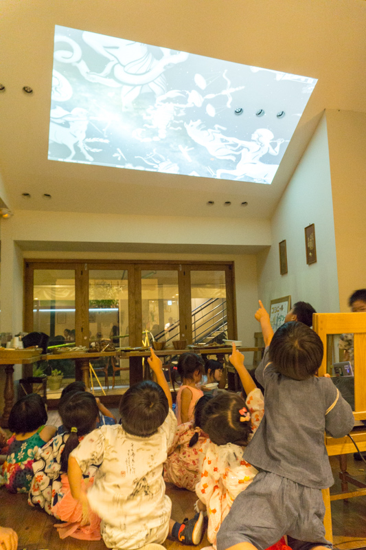 皆がお腹いっぱいになってきた頃、ほんちゃんの星のおはなし会がスタート。