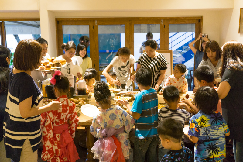 ※今回各テーブルに写真撮影に回ったのですが、流しそうめんが大人気でなかなかテーブルに人が揃わず・・・。テーブルごとの写真がなくてごめんなさい![]()