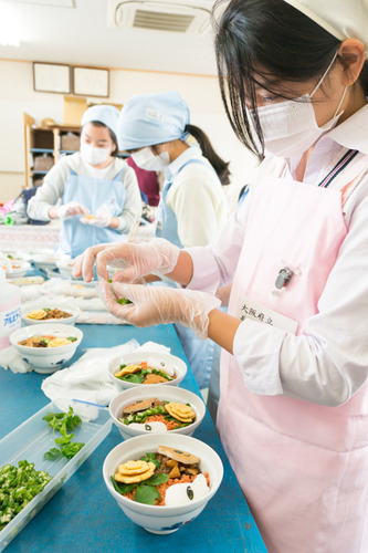 みんなマスク、エプロン、三角巾をして衛生面にも気をつけていました。