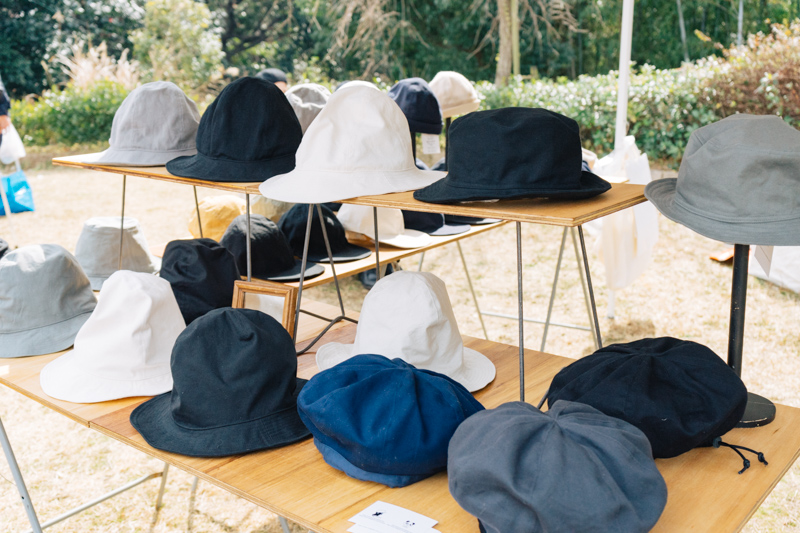 こちらはハンドメイドの帽子を販売するmoroccoさん。ネイビーやグレーなど普段使いしやすい帽子は春のコーディネートに取り入れたい。