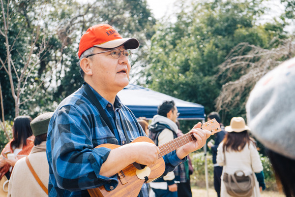 会場の中心ではウクレレの生演奏が行われていました!演奏しているのはウクレレ・バンジョー・パーカッションなどの『harvest season』さん。