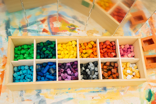 小さく刻まれた色とりどりのクレヨン。どれにしようかな〜!