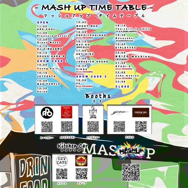 出演アーティストのタイムテーブルに、出店店舗やキッチンカーなど。