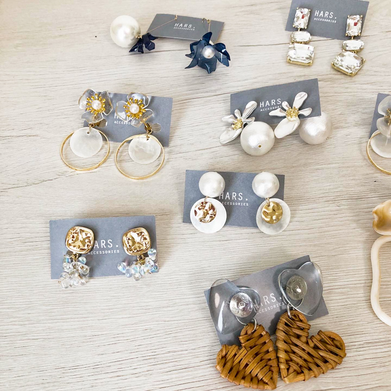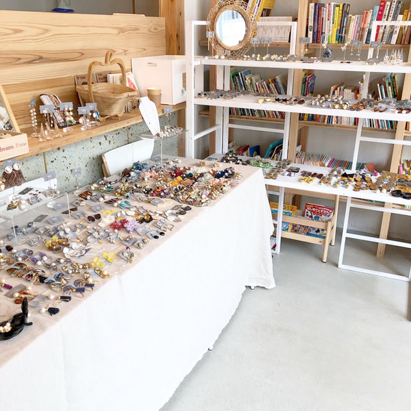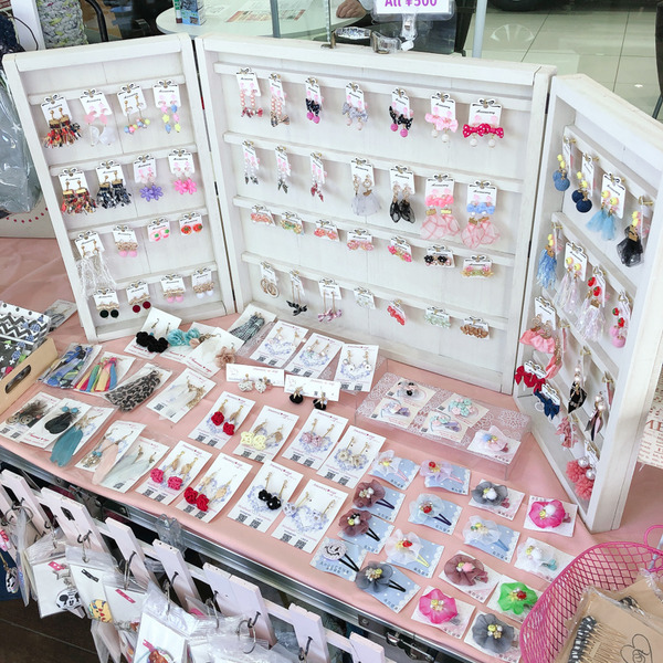 様々な素材を使ってデザインしたアクセサリーの販売です。