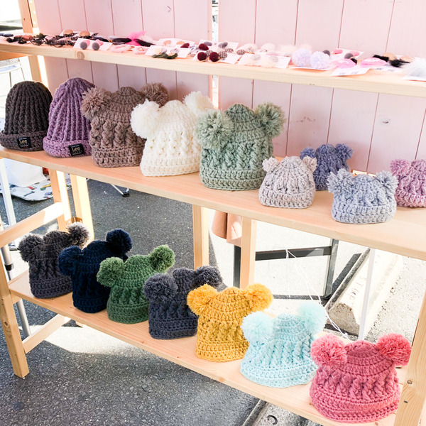手編みのバッグや帽子、アクセサリーなど。大人可愛いデザインで仕上げています。