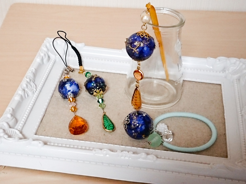 デコパージュアクセサリー、キーホルダー、ヘアゴム等のワークショップ