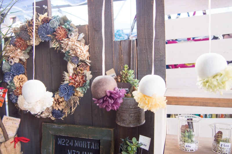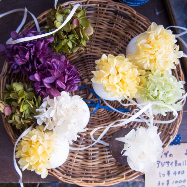 手前に吊り下げられている卵のカラに入ったようなプリザーブドフラワー、めっちゃ可愛い。