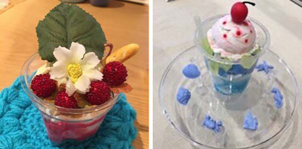 ねんどアートは「ねんどでクリームソーダを作ろう♪」「 ねんどのアイスクリームパフェを作ろう♪」の2種類から選べます。