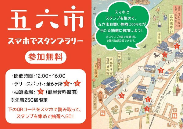 スマホでスタンプを集めて、五六市お買い物券(500円分)が当たる抽選に参加しよう!