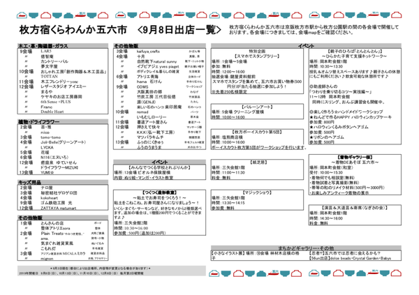 ↓9/8の出店一覧やイベント情報。(クリックで拡大)