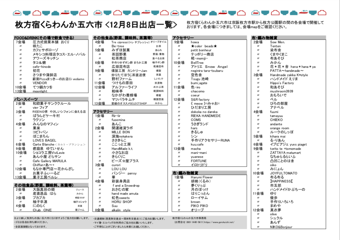 12月8日(日)は枚方宿くらわんか五六市の開催日です!