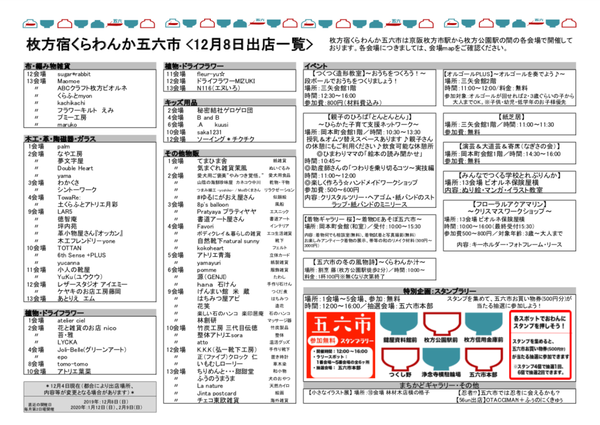 ↓12/8の出店一覧やイベント情報。(クリックで拡大)