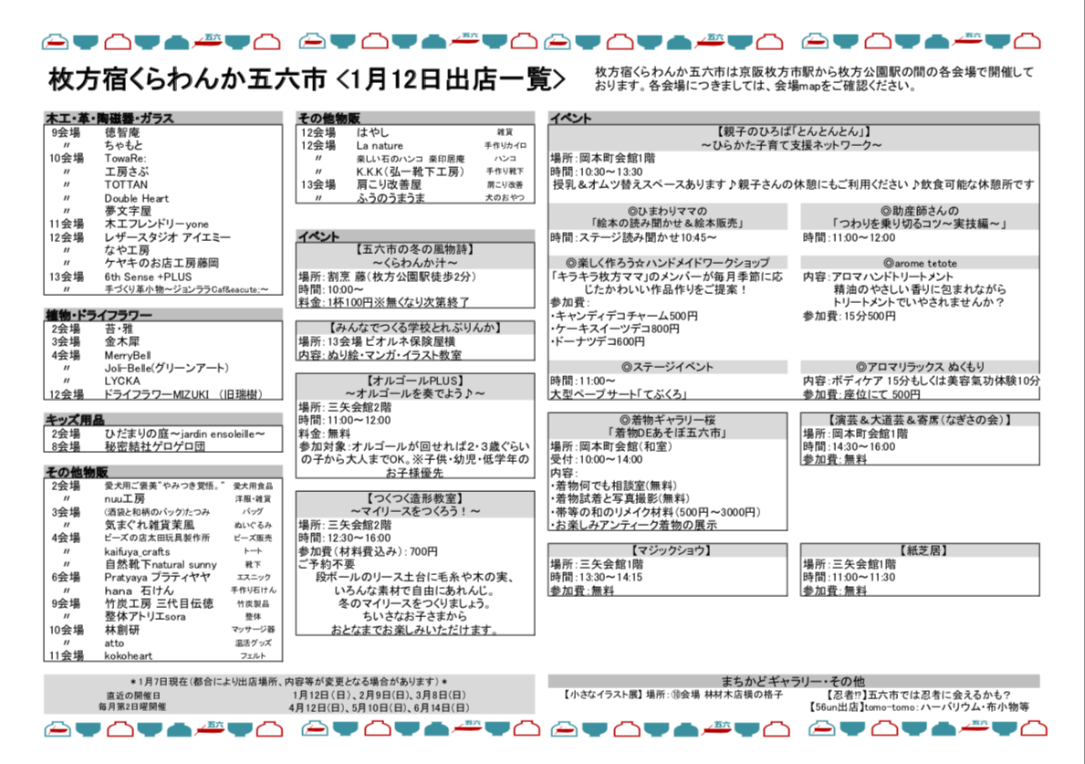 1月12日(日)は枚方宿くらわんか五六市の開催日です!