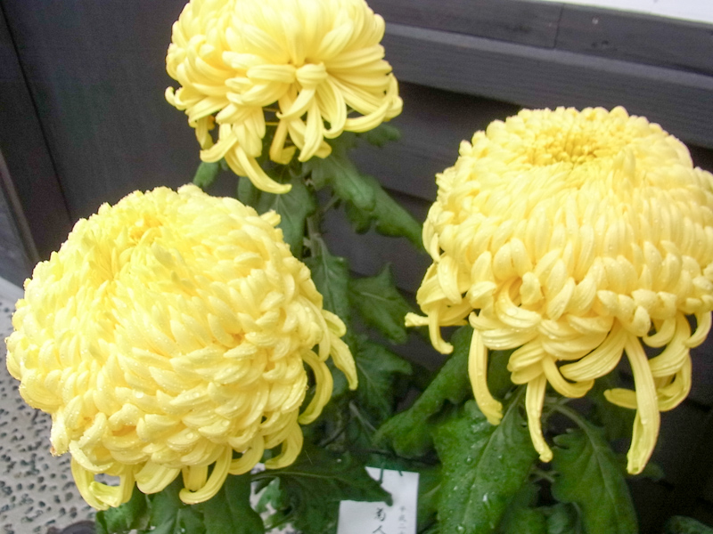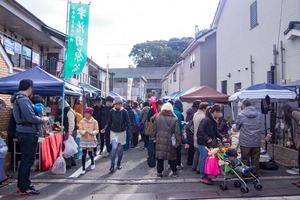 市内小中学校や枚方宿地区で育てられた菊花約200鉢が、街道沿いの家々の軒先に飾られています。それぞれの鉢には、昨年度「俳句大会」に投句されて入賞した俳句も添えられていますので、五六市を楽しみながら趣き深い枚方宿の街並みをお楽しみください。