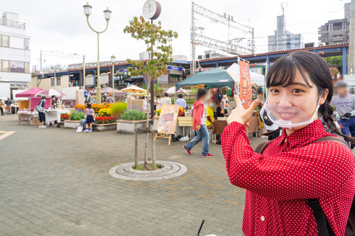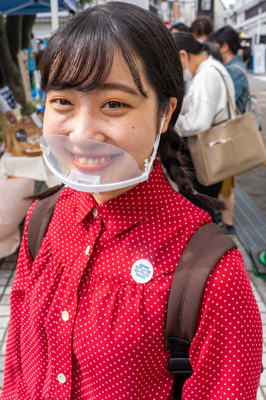 検温済みシールをつけるとこんな感じ(先月の五六市にやってきたこ枚の方)