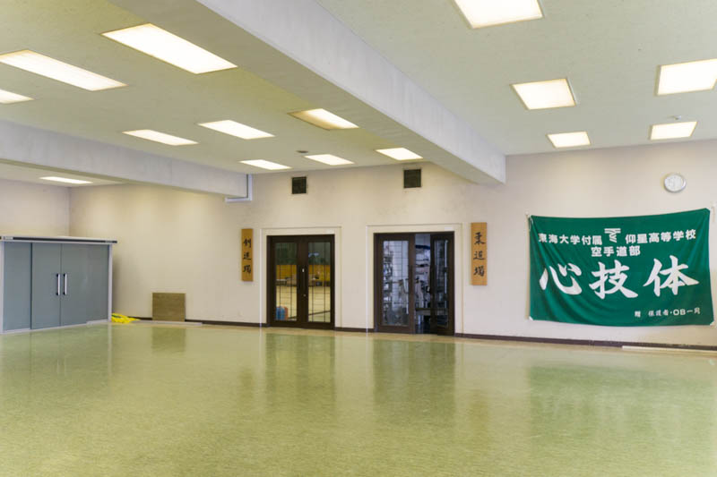 体育館は中に入ると柔道場と剣道場があり、2階にアリーナがある構造。