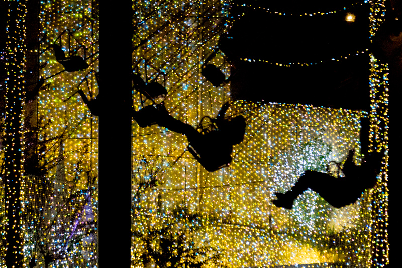 あんまり上手いこといきませんでしたが、手前の空中ブランコのシルエットと撮影するとなんだか不思議な感じに。