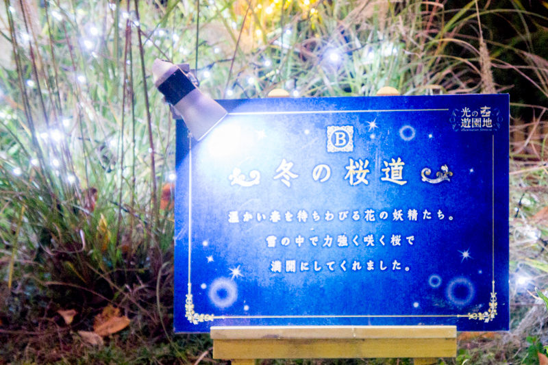 続いてはパチャンガ前から観覧車の方へ続く坂道の「冬の桜道」エリア。