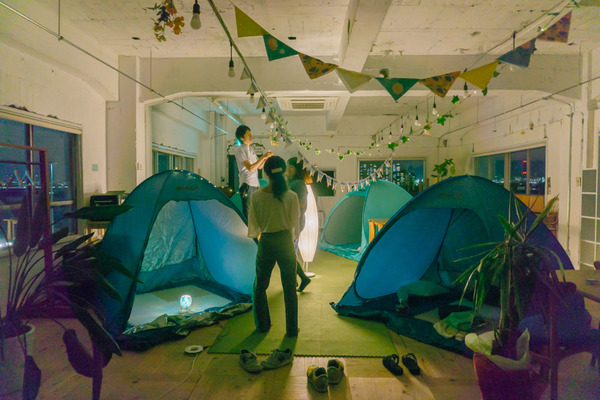 ひらばNightCampは室内にテントを立てるので、天気にも気温にも左右されず、虫にも翻弄されず、トイレもきれい!