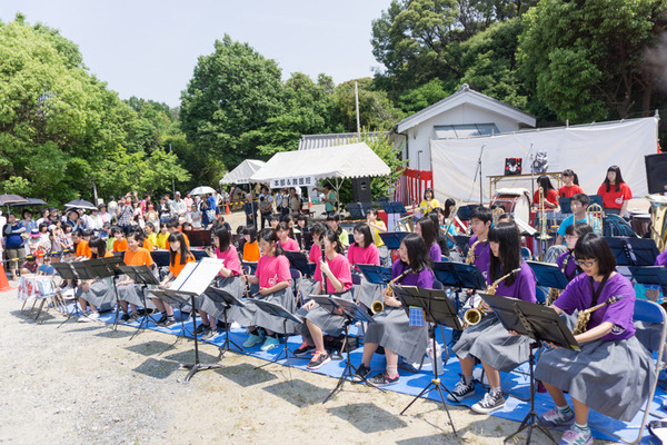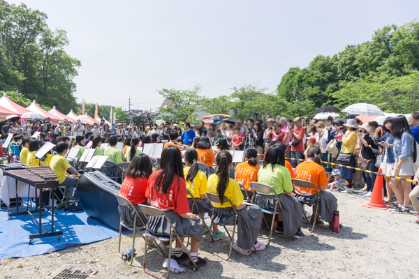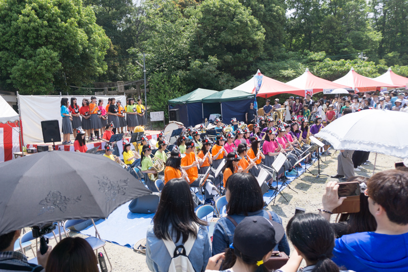 会場内にはオープニングセレモニーで演奏していた長尾中ブラスバンドの皆さんが歩き回っていました。