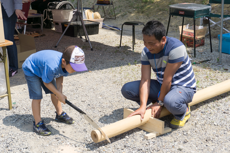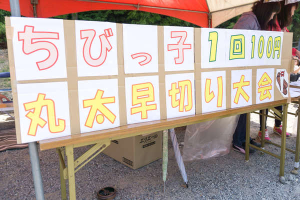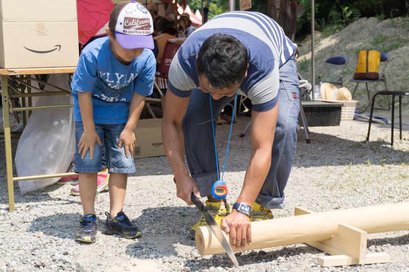 こちらは中川忠工務店と川昌工産のブース「ちびっこ丸太早切り大会」