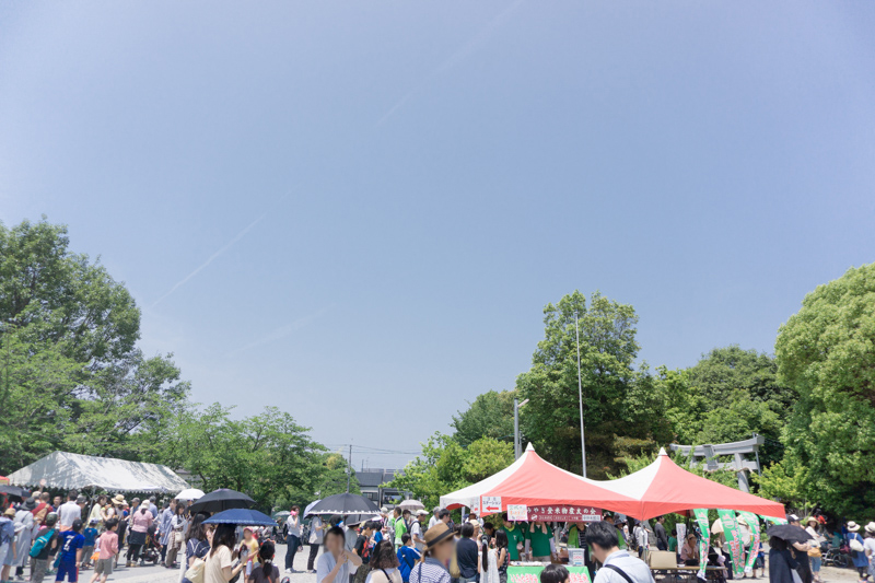 雲一つない快晴の空の下、地元のお店とお客さんでにぎわうお祭りでした。