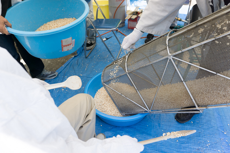 菅原神社の氏子さんたちの「ポン菓子ブース」でした。(一袋100円)