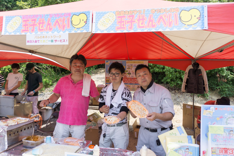 ひらつーパートナーでパルの木ネットワークキャンペーンでもコラボ中のサンエースのブース。100円でたまごせんべいを販売!