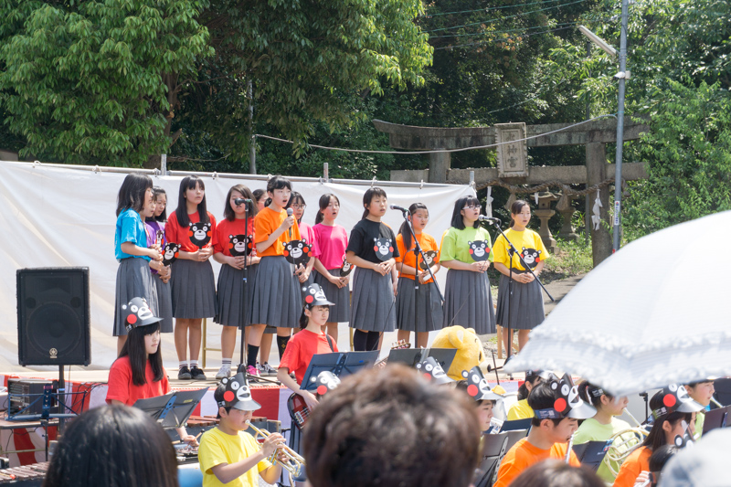 熊本復興支援のチャリティーイベントでもある今年のヒラカタ縁Joyカーニバル。長尾中ブラスバンド皆さんはくまモン帽子とうちわをもって熊本の曲も演奏されました。
